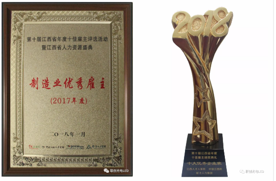 1月13日,由中國江西網、江西人才人事網、南昌高新區(qū)人社局共同舉辦的第十屆江西省年度十佳雇主頒獎典禮暨2018年度江西省人力資源盛典在南昌隆重舉行。聯創(chuàng)光電從全省427家企業(yè)中脫穎而出,榮獲2017年度“制造業(yè)優(yōu)秀雇主”稱號,股份公司總裁孫寧先生榮獲“十大優(yōu)秀企業(yè)家”稱號。