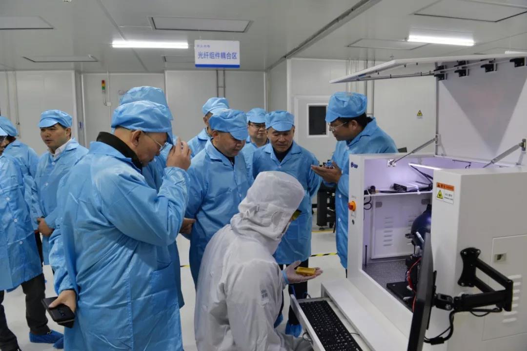 揭牌儀式后,各級領(lǐng)導(dǎo)前往中久光電產(chǎn)線參觀,實(shí)地考察了激光器產(chǎn)品的生產(chǎn)工藝及加工生產(chǎn)線。